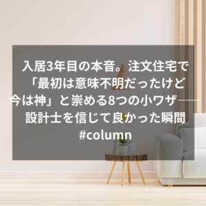 教訓: 配線・照明・換気は、後からの変更が最もコスト高。間取り段階での綿密な計画が必須です。